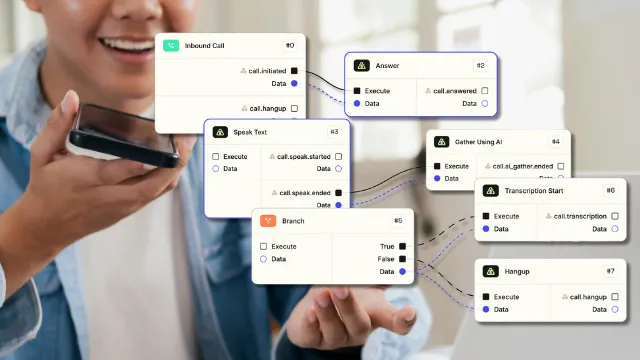 Create highly customizable Call Control workflows with Telnyx Flow. Automate call handling for efficient, reliable voice communication.